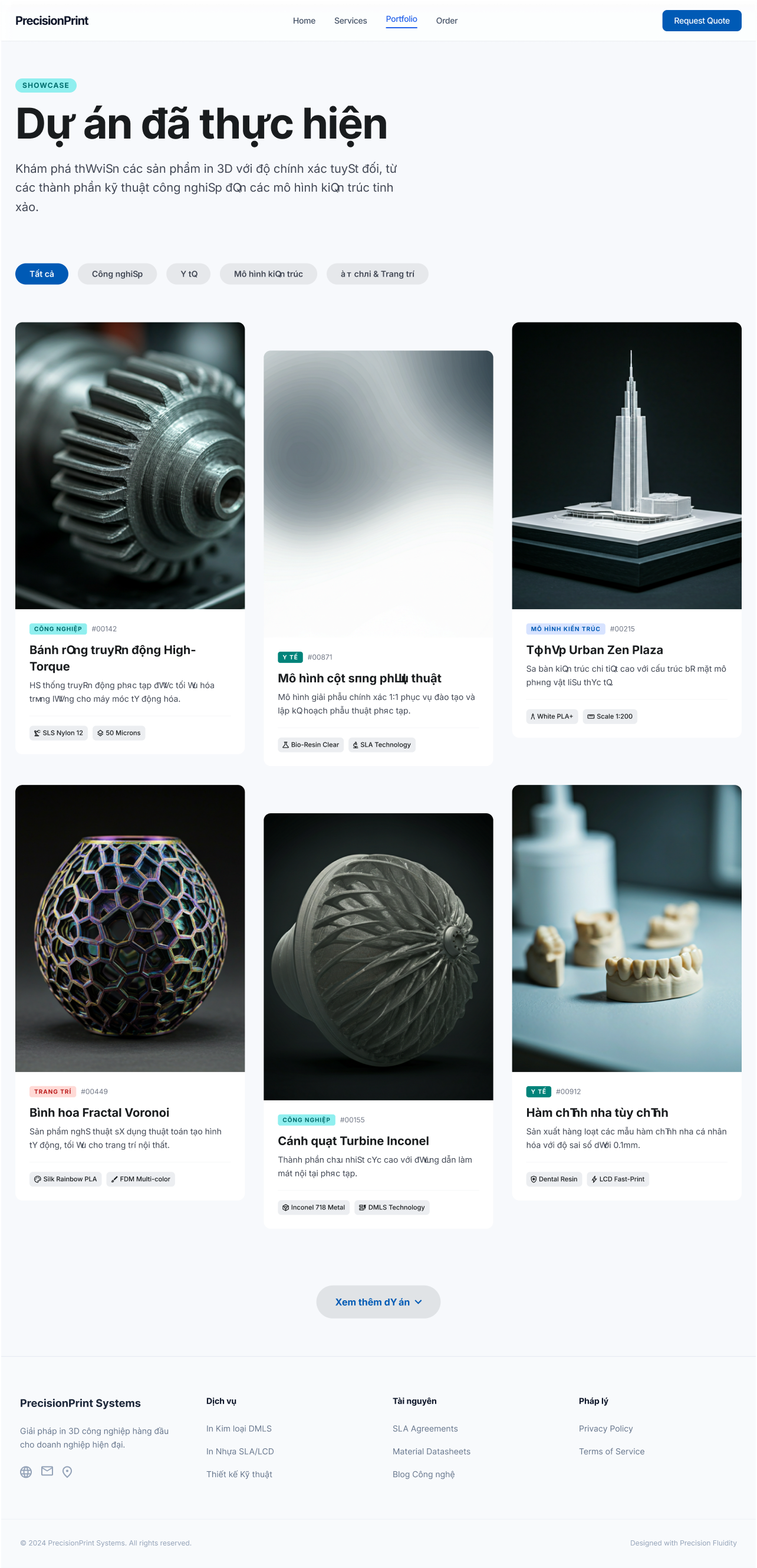 Khám phá thư viện các sản phẩm in 3D với độ chính xác tuyệt đối, từ các thành phần kỹ thuật công nghiệp đến các mô hình kiến trúc tinh xảo.